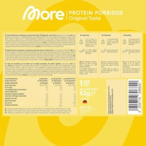 Ingredients:MILK Protein Concentrate 55%, Whole Wheat OATS (gluten free) 39%, Glucomannan (from Konjac Root) 2%, Psyllium Husk Powder, Soluble Fibre (Maize), Salt, Lactase, Sweetener (Steviol Glycosides from Stevia). Origin of ingredients: EU/Non-EU.